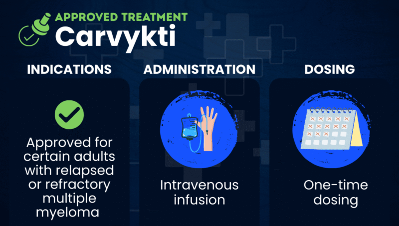 Carvykti (ciltacabtagene autoleucel) is an approved CAR T-cell therapy that’s used to treat certain adults with multiple myeloma that has returned after (relapsed) or not responded to (refractory) other treatments.