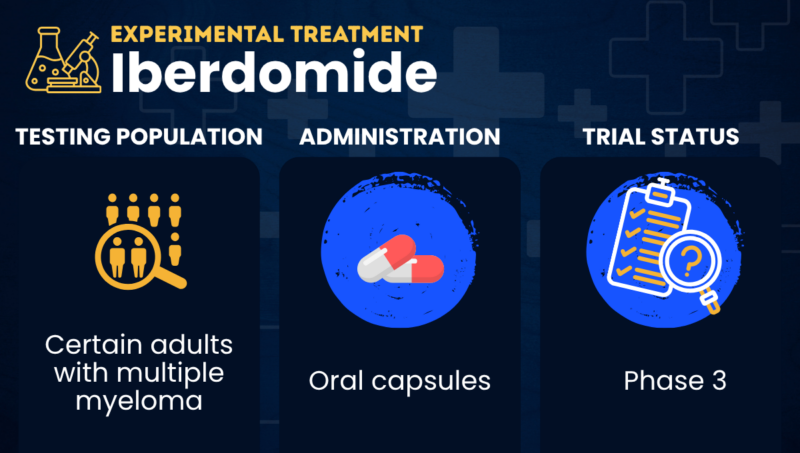 Iberdomide is an experimental oral therapy being developed by Bristol Myers Squibb for multiple myeloma.